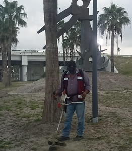 Mantenimiento en Monumento Reynosa con realizaron trabajo de corte de maleza, limpieza general, barrido y raspado de banquetas y cordones en el monumento de la carretera Monterrey-Reynosa.