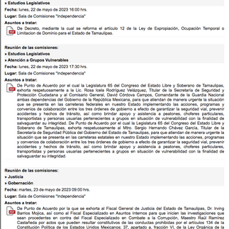 Agenda semanal: https://www.congresotamaulipas.gob.mx/ServiciosLinea/Actividades/ProximasAclocurascuerdas122 may 20230 Min. de lectura