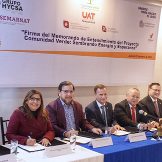 En ese marco, se llevó a cabo la firma del convenio de colaboración del proyecto Comunidad Verde, una alianza estratégica encabezada por el Club Rotary Ciudad Victoria, junto con la Secretaría de Desarrollo Urbano y Medio Ambiente (SEDUMA), la Secretaría de Educación de Tamaulipas (SET), la Universidad Autónoma de Tamaulipas (UAT), la SEMARNAT, el Gobierno municipal de Victoria, la asociación civil Latiendo por Tamaulipas y el Grupo HYCSA.