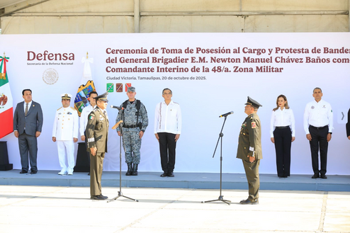 Asiste gobernador Américo Villarreal a toma de protesta del comandante interino de la 48 Zona Militar
