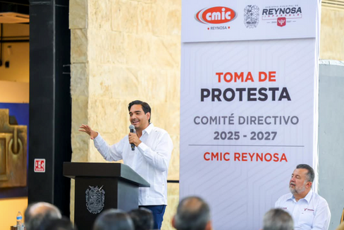 En su mensaje, el Alcalde felicitó también al Presidente saliente de la Cámara Mexicana de la Industria de la Construcción, Guillermo Acebo Salman y agradeció la presencia del dirigente estatal, Pablo Eduardo Haro Panduro; de Sergio Oliverio Castillo Sagástegui, Director General del Instituto Tamaulipeco de Infraestructura Física Educativa; Mayor Médico Cirujano, Ulises Montiel, representante de la Octava Zona Militar, y Eduardo López Arias, Secretario de Obras Públicas.