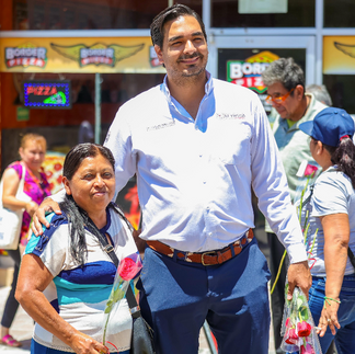 Con motivo del Día de las Madres, el Presidente Carlos Peña Ortiz recorrió la calle peatonal de la Zona Centro para felicitar y homenajear con admiración, este día 10 de mayo, a las madres reynosenses y en un gesto simbólico, hizo entrega de una flor como muestra de honor, respeto y amor.