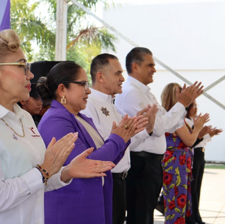 Formaron parte de la línea de honor, el subsecretario de Operaciones de la Guardia Estatal, Enrique Dena Salgado; el subsecretario de Ejecución de Sanciones y Reinserción Social, Lorenzo Ruiz Vázquez; la titular del órgano de control, Cecilia Camarillo García; la directora de Investigación, Diagnóstico y Mediación Penitenciaria, Rosa Isela Lugo Jaramillo; y la directora de Administración y personal de la Coordinación General de Administración, Zaida Hernández Pérez.