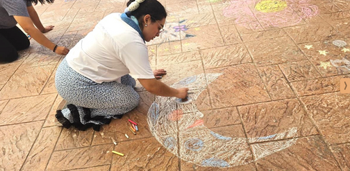 Tras el octavo día de actividades, los estudiantes han explorado técnicas como colorear y recortar dibujos para convertirlos en rompecabezas, hasta diseñar bocetos de camisetas, creación de collages y experimentar con gises.