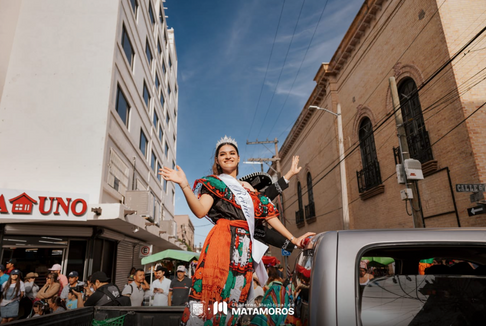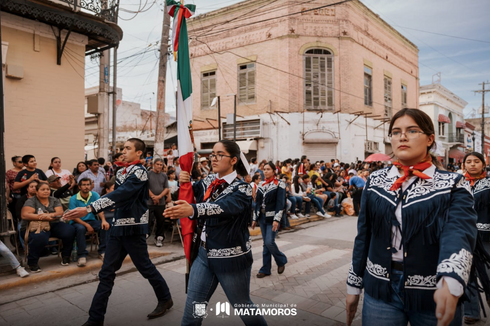 H. Matamoros; Tamaulipas. - El Presidente Municipal, Beto Granados; encabezó el Desfile Internacional de Fiestas Mexicanas 2025; donde estuvo acompañado por los Huéspedes Distinguidos de Matamoros; Carmen Muñoz, Bárbara de Regil y Adrián González.