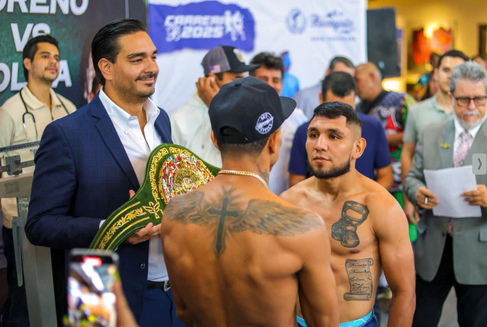 Encabezaron Ceremonia de Pesaje Carlos Peña Ortiz y Mauricio Sulaimán Saldivar - En juego el "Cinturón Reynosa", nueva presea del WBC..