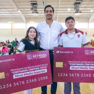 Las Becas Municipales "Contamos Contigo 2023" cumplieron la fase de Educación Media Superior, con la entrega de tarjetas para los estudiantes que recibirán el apoyo del Gobierno de Reynosa este año 2024, en que 160 Millones de Pesos fueron destinados para que permanezcan en las aulas escolares y no trunquen sus estudios.