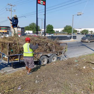Tras finalizar con el corte de hierba y limpieza general del acceso al parque industrial Del Norte, la Dirección de Parques y Jardines del Municipio procedió a recolectar la maleza en el sitio.