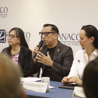 Por parte del sector empresarial, participó el presidente de Canaco Victoria, Federico Arturo González Sánchez, junto a su comitiva, refrendando el compromiso de la iniciativa privada con la legalidad, la seguridad y el respeto a los derechos laborales.