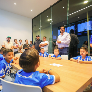 El Alcalde Carlos Peña Ortiz fue visitado por niños deportistas reynosenses de la Liga Municipal Universitaria de Fútbol, que se coronaron campeones en la entidad, y representarán a Tamaulipas en el Campeonato Nacional en Mazatlán, Sinaloa.