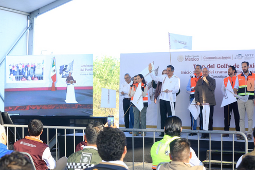 Acompañado por Jesús Antonio Esteva Medina, secretario de Infraestructura, Comunicaciones y Transportes, y Andrés Lajous Loaeza, titular de la Agencia Reguladora del Transporte Ferroviario, el mandatario tamaulipeco dio la bienvenida a esta obra de gran calado, que permitirá la generación de 10 mil 922 empleos directos y 32 mil 766 empleos indirectos.