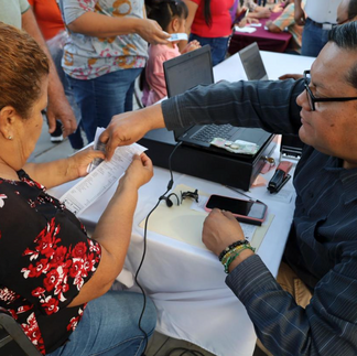 En compañía de sus equipos de colaboradores, brindaron atención a los más de 300 asistentes reunidos en el área verde de la comunidad, donde se instalaron módulos de COMAPA, empleo, expedición de tarjeta de descuento AMA, lentes y tinacos a bajo costo a través de la Secretaría de Bienestar Social.