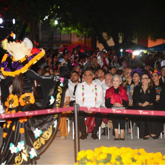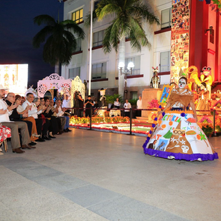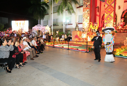 Ciudad Victoria, Tamaulipas.- En un ambiente impregnado por el aroma de la flor de cempasúchil, el pan de muerto y las luces de las velas, el gobernador Américo Villarreal Anaya y la presidenta del Sistema DIF Estatal, María de Villarreal presidieron la premiación del concurso estatal de catrinas y catrines "Almas Tamaulipecas" y la muestra del altar monumental del Día de Muertos en las escalinatas de Palacio de Gobierno .