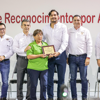 Realzando la celebración, trabajadores del Sindicato recibieron un reconocimiento por su antigüedad con hasta más de 30 años de servicio, y reconocimientos especiales para Rafael Jiménez López ex Secretario General del Sindicato de Mantenimiento y Limpieza; para el Alcalde Carlos Peña Ortiz y para Reynaldo Garza Elizondo.