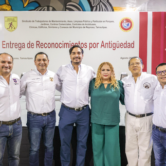 En el presidium acompañaron a la primera autoridad municipal los Secretarios Generales, Elizabeth Juárez Merinos, del Sindicato en Tampico; Jorge Montante Pineda, del Sindicato en Nuevo Laredo; Alejandro Millán Robledo, del Sindicato en Matamoros; Rosa María Maldonado Martínez ex Secretaria en Reynosa, y Rafael Jiménez López, ex Secretario en Reynosa.