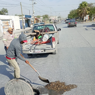 COMAPA de Reynosa continúa con los trabajos de limpieza de pozos de visita en distintos puntos de la ciudad, donde se ha detectado una considerable acumulación de basura, desechos sólidos, grasas y otros residuos que afectan el correcto funcionamiento de la red de drenaje.